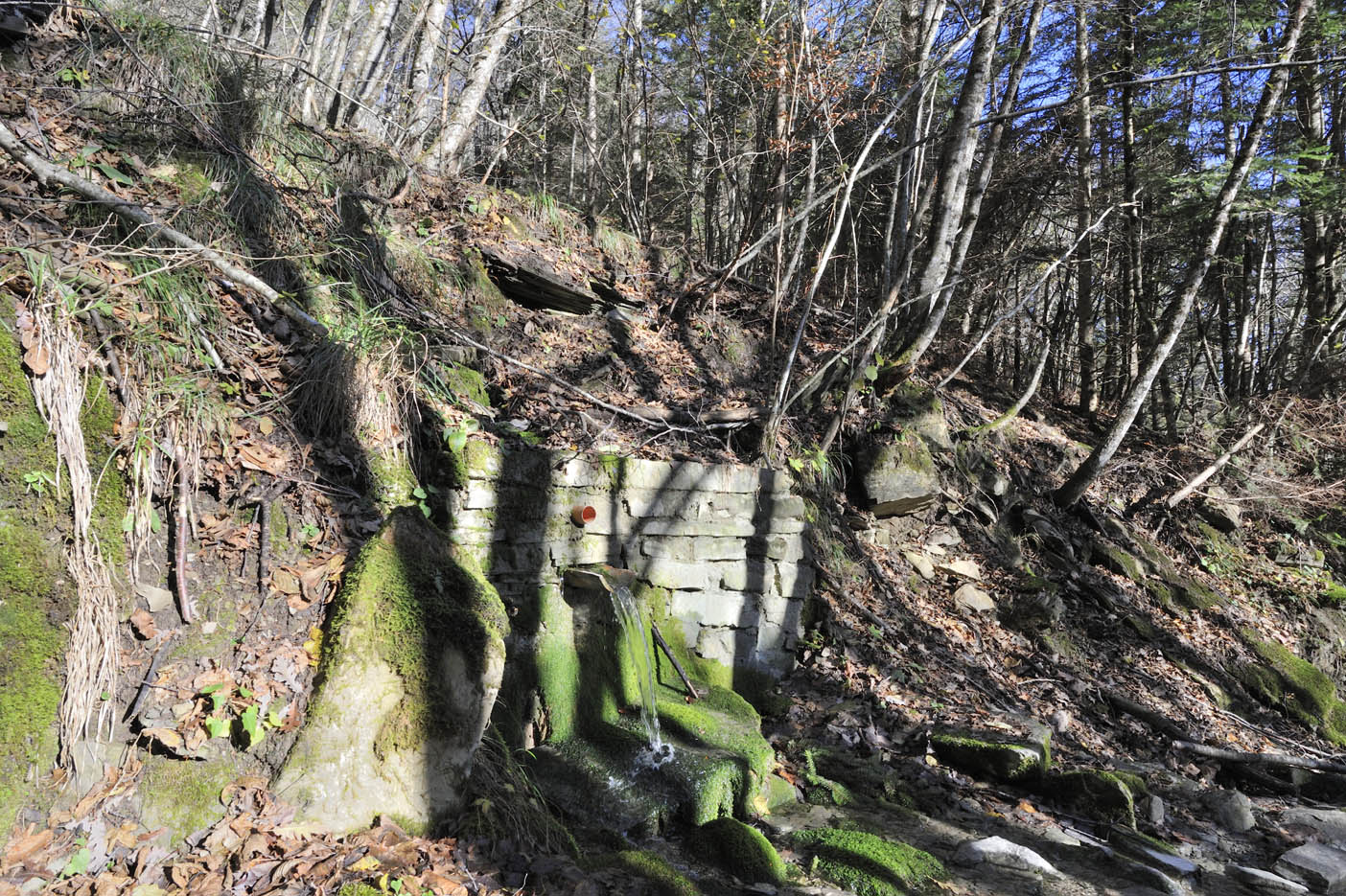 004p/004s – Sull’altro ramo del Rio del Castagno, al guado sulla mulattiera, sgorga un’anonima Fonte (del Castagno?) (10/12/15 – 29/11/18).