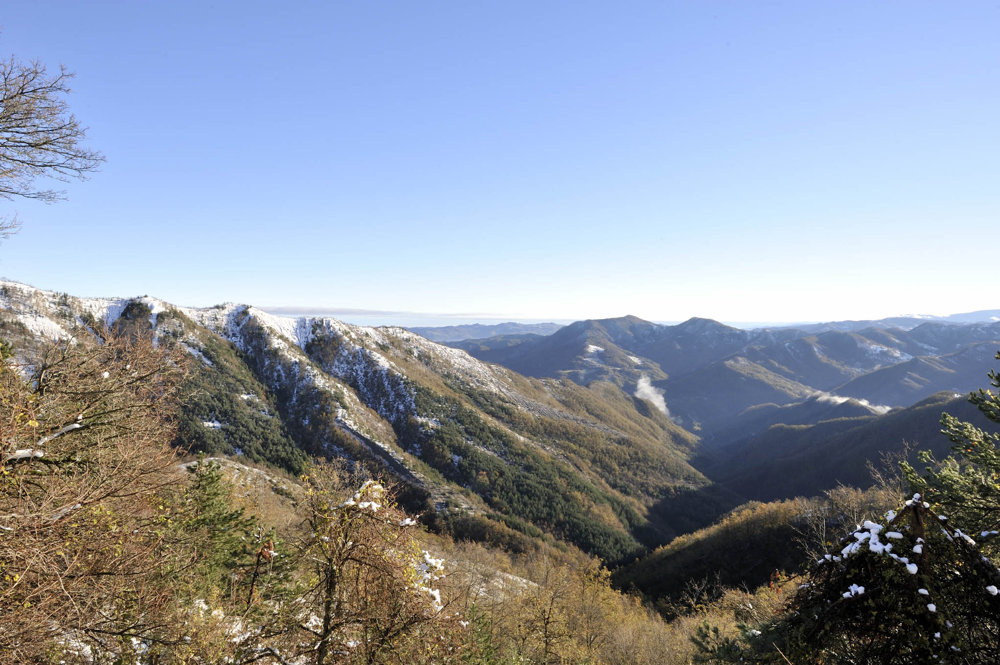 004a/004l – Vedute del versante meridionale della vallata del Rio Bacine dal sent. 233 (10/12/15).