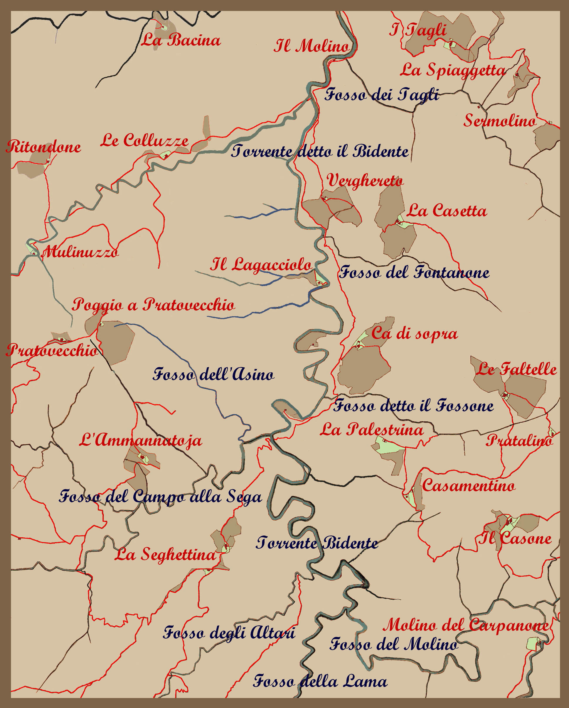 Per approfondimenti ambientali e storici si rimanda alla scheda toponomastica Valle del Bidente di Ridràcoli e/o relative ad acque, rilievi e insediamenti citati.