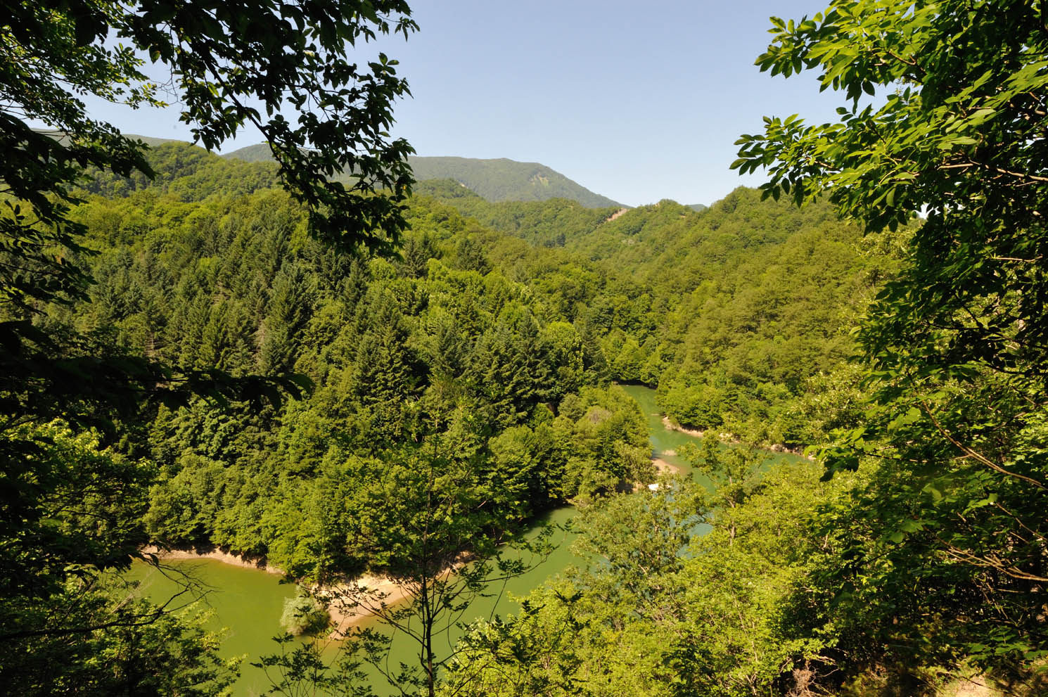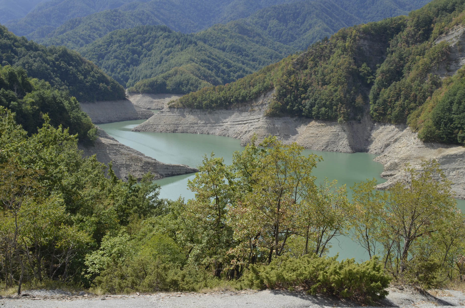 001h – 001i – Dalla SP 124 Badia Prataglia-Sacro Eremo pressi M. Penna, altra veduta ravvicinata delle anse lacustri (8/09/11).