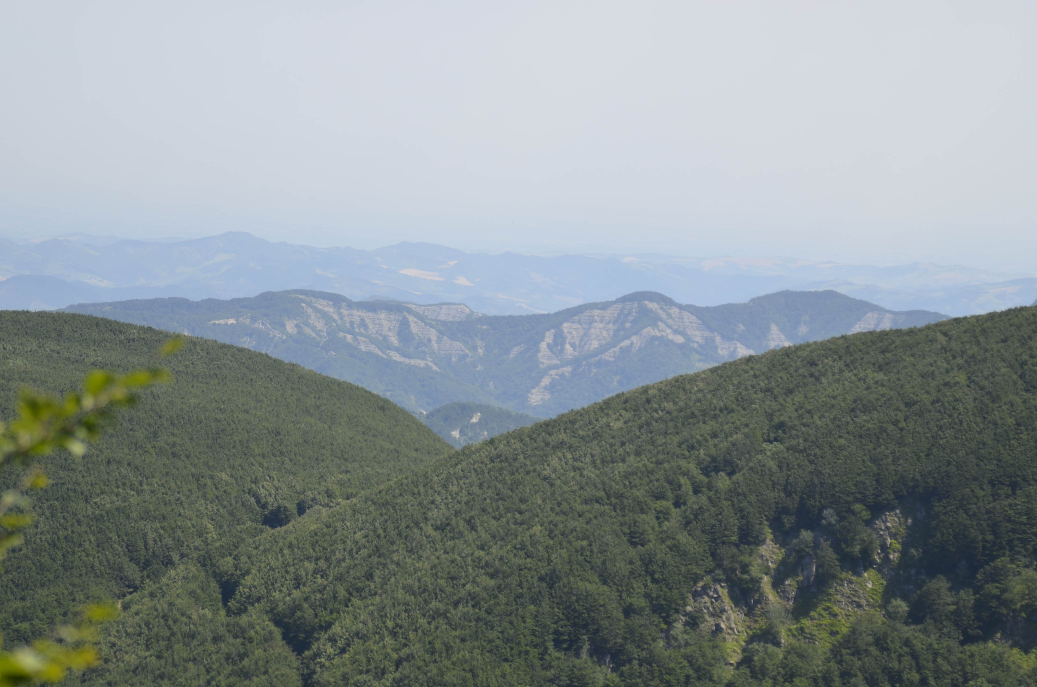 001s – 001t - Dal Sentiero degli Alpini (SA 301 CAI) presso Poggio Bini sul contrafforte principale, punto di vista ottimale su uno dei tratti più impervi del versante appenninico, si abbraccia l’alto versante vallivo del Bidente delle Celle, il da cui ha origine il Fosso del Satanasso. In particolare, tra le emergenze di Poggio Martino, sulla sx, e Pian delle Fontanelle, sulla dx, si notano meno il Monte Falco e Poggio Piancancelli (16/04/16).