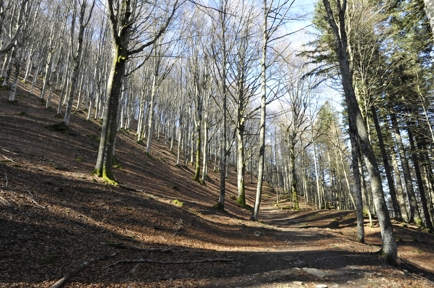00d4/00d12 – Il versante della valle del Fosso di Fangacci in sx idrografica insiste su Poggio Tre Confini è inciso da numerosi impluvi e affluenti ed è attraversato dal tracciato dell’antica Giogana (rimangono resti del selciato) che, oggi come sent. 00 CAI, dall’antica Fonte dei Beventi, oggi dei Fangacci, risale verso il sovrastante passo anticamente detto anch’esso del Gioghetto (v. scheda Passo dei Fangacci), localizzabile in loc. Cava dei Frati, dove si dirama il sent. 98 di crinale che conduce a Poggio Tre Confini (20/02/20).