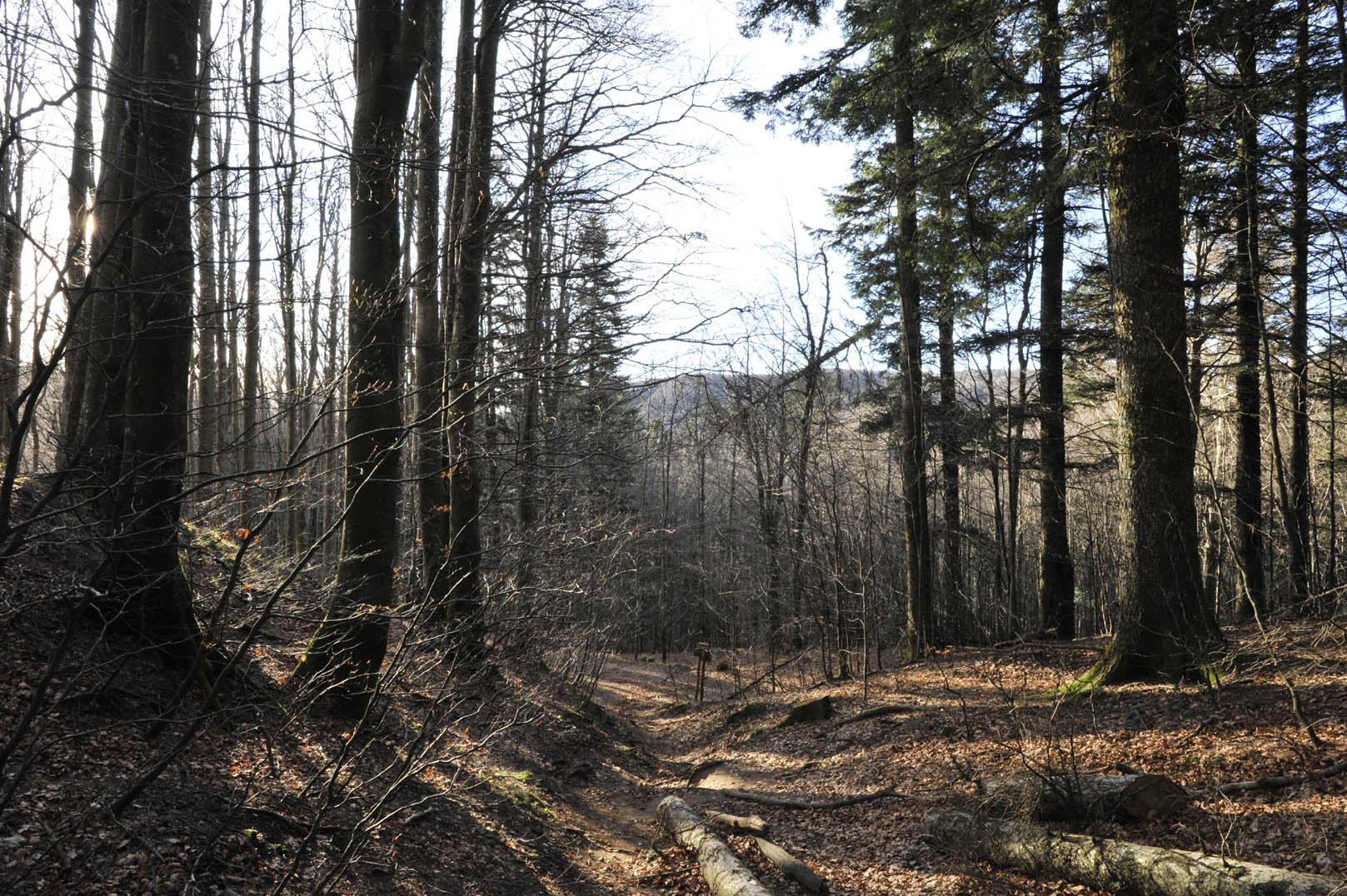 00d1 – 00d2 – 00d3 – La valle del Fosso dei Fangacci trova la quota maggiore con Poggio Tre Confini (1394 m), con parte del crinale segnato dai cippi confinari, risalenti al 1853 (quando Leopoldo II acquistò le foreste) impiantati a seguito del contenzioso con il Monastero di Camaldoli (20/02/20).