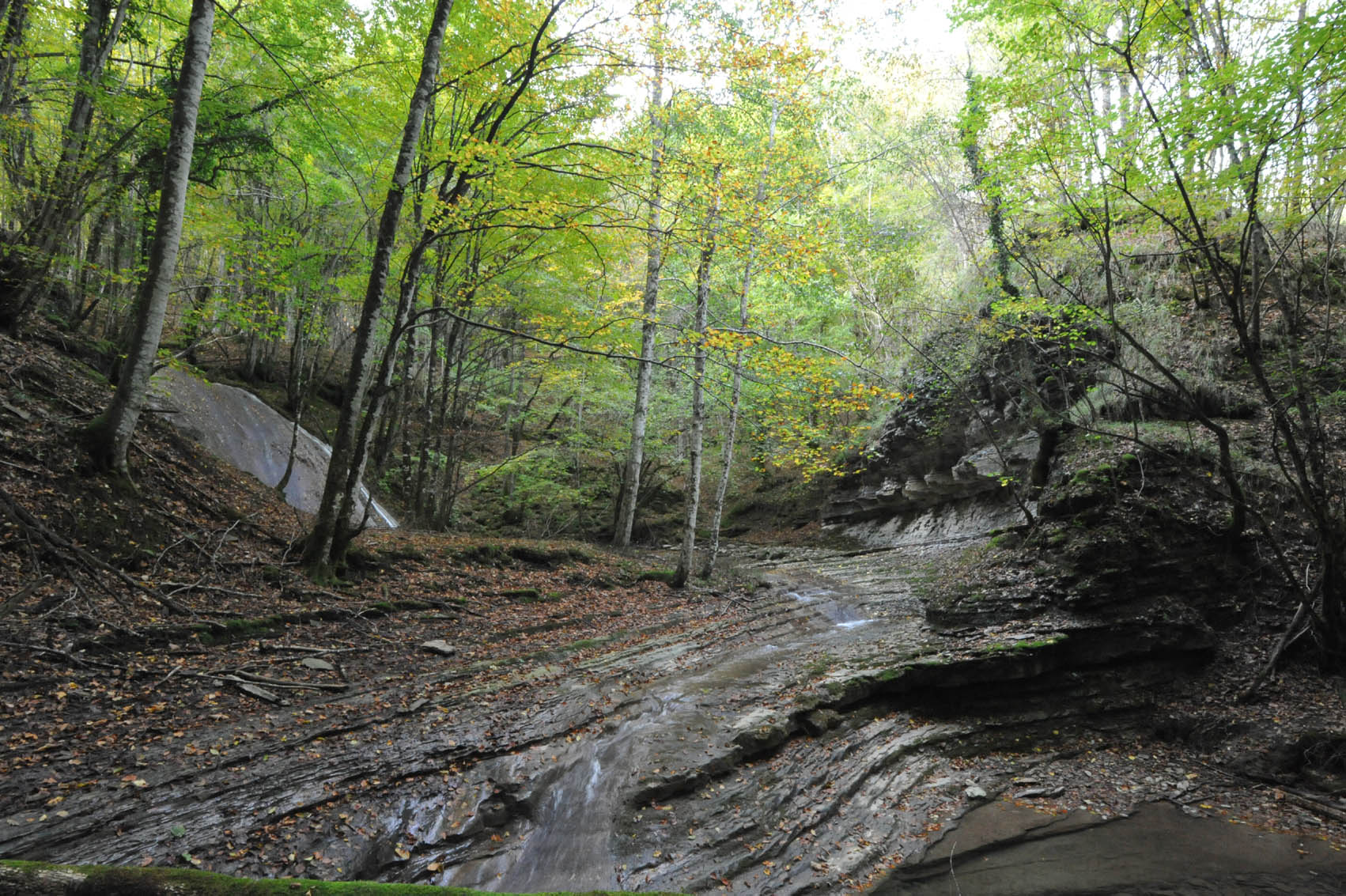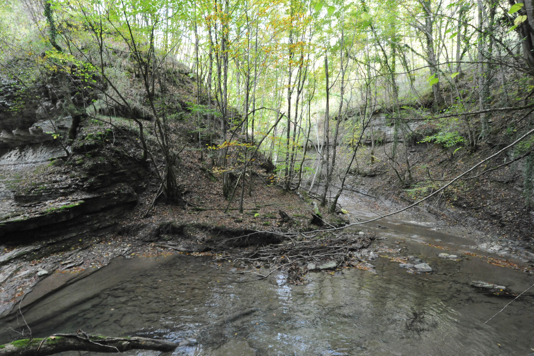 00f1 – 00f2 - Vedute del primo impluvio del Fosso di Romiceto dal sent. 207 CAI (corrispondente all’antica Via Maestra che vien dall’Eremo), poco sotto Poggio della Bertesca, laddove costituisce tratto di testata del suo bacino idrografico ().