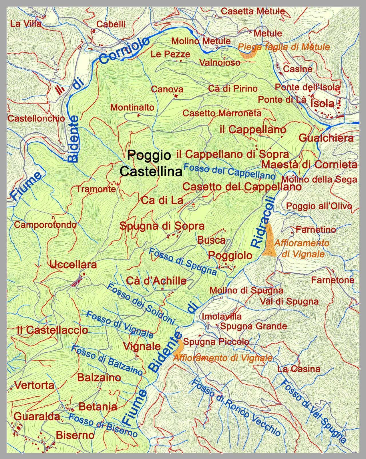 00i1 – Schema cartografico dell’area del contrafforte presso Poggio Castellina.