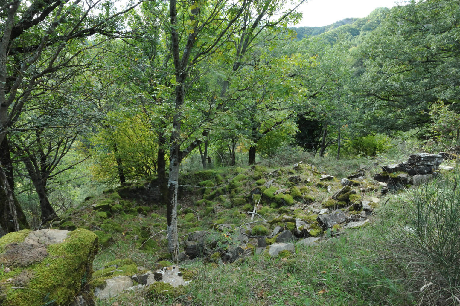 Testo di Bruno Roba (23/06/2022) – Il complessivo bacino idrografico dei Fossi del Vallone e dei Poderini e del Fosso di Cà dei Maestri, avente origine dalla confluenza dei primi due, si attesta su un tratto di versante orientale del contrafforte secondario successivo al Crinale della Bertesca, laddove, superata la sella tra il Paretaio e Siepe dell’Orso (che mette in comunicazione le valli di Ridràcoli e Pietrapazza), si genera una biforcazione. Mentre il contrafforte prosegue a Nord rialzandosi con il picco di Croce di Romiceto, dal modesto rilievo posto dietro Siepe dell’Orso, forse anticamente detto Monte Valprandola, si staccano due dorsali che prima divergono poi seguitano parallele sul Nord-Est racchiudendo detto bacino. La dorsale più meridionale, che si sviluppa fino al Bidente subito a monte di Pietrapazza (dove incontra l'opposto Crinale delle Graticce), già detta Raggio di Valprandola, la parte alta e Raggio da Rignuno o Rignuni, ovvero di Rignone, il tratto inferiore, divide a Sud dal sistema vallivo del Fosso Fondo Rignone. La dorsale più settentrionale, anticamente detta La Balza o Raggio della Balza, comprendente il Monte Roncacci, divide a Nord dalla valle del Fosso del Trogo, andando principalmente a terminare sul Bidente prima de La Cortina, laddove, all’altezza del Monte Casaccia, incontra l’opposta dorsale proveniente dal Monte Castelluccio. Una dorsale minore compresa tra esse, già detta Raggio del Valone, ovvero del Vallone, separa le valli dei Fossi del Vallone e dei Poderini. Dal Monte Roncacci, costituente nodo montano, si generano due opposte dorsali minori: quella volta Sud-Est chiude la confluenza di detti fossi definendo il punto di origine del Fosso di Cà dei Maestri (idronimo antico, oggi a volte detto di Cà di Giorgio, ma questo è un suo affluente), mentre da un picco di poco successivo, dove la dorsale principale si sfrangia verso il Bidente, si genera a 90° SE la cresta che (andando ad incontrare l’opposto Raggio di Rignone) chiude il bacino idrografico, laddove ospita l’insediamento di Cà dei Maestri. Se l’oronimo Roncacci è una probabile formazione del XIX secolo (compare nella Carta d’Italia I.G.M. del 1894), anticamente tale picco non pare avesse preminenza identificativa nel Raggio della Balza (coincide il significato toponomastico), mentre l’oronimo Monte Valprandola che, in base alle ricerche archivistiche di C. Bignami e A. Boattini (2018, cit.), corrisponderebbe al rilevo maggiore (posto dietro Siepe dell’Orso) da cui si staccano i “raggi” della Balza e di Valprandola, è oggi del tutto desueto, come l’altra toponomastica remota.