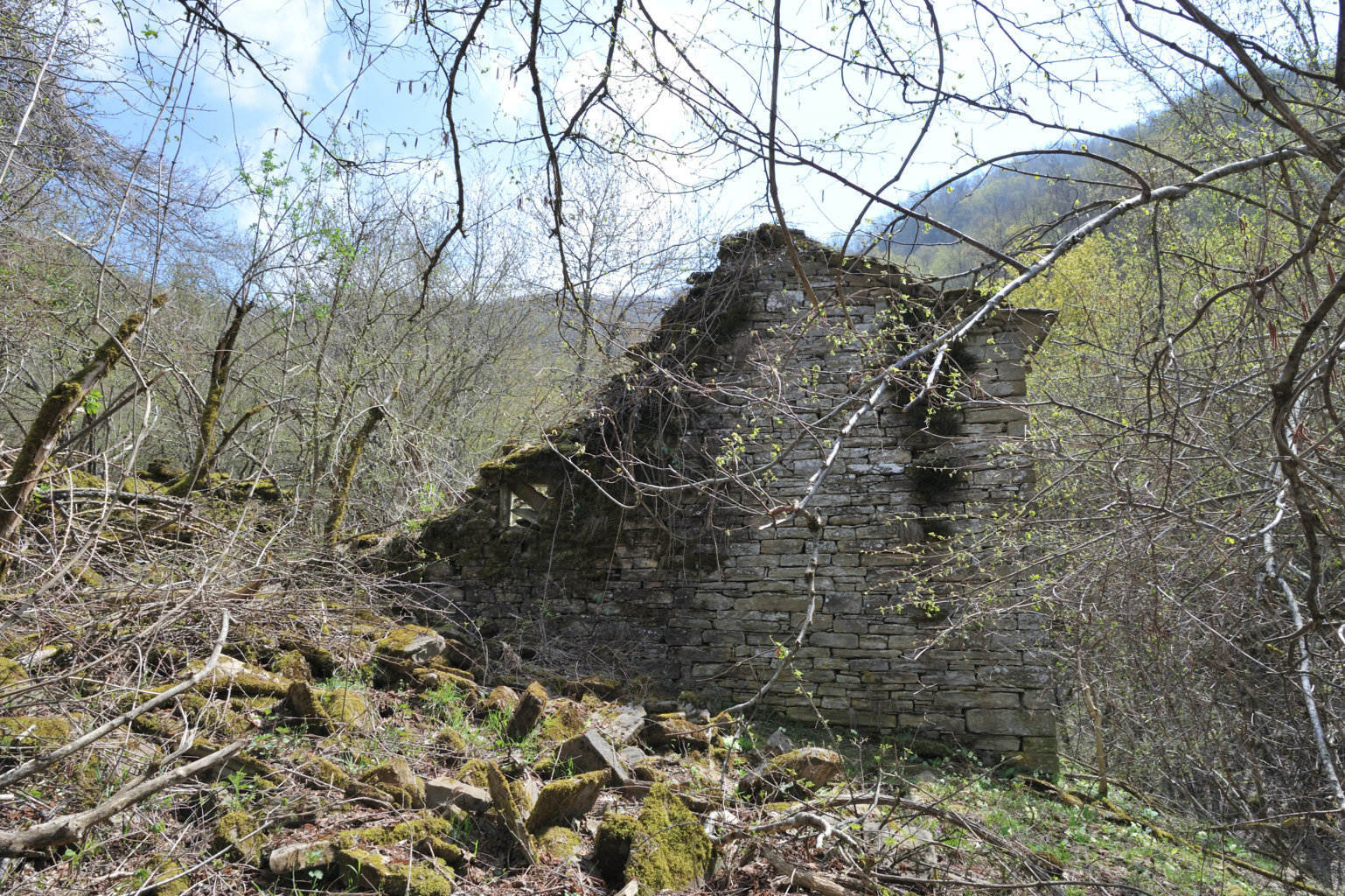 00i1 - 00i2 - La mulattiera rasenta Il Podere: la traccia del percorso per Case di Sopra si trova di fronte ai ruderi (19/04/18 - 19/12/22).