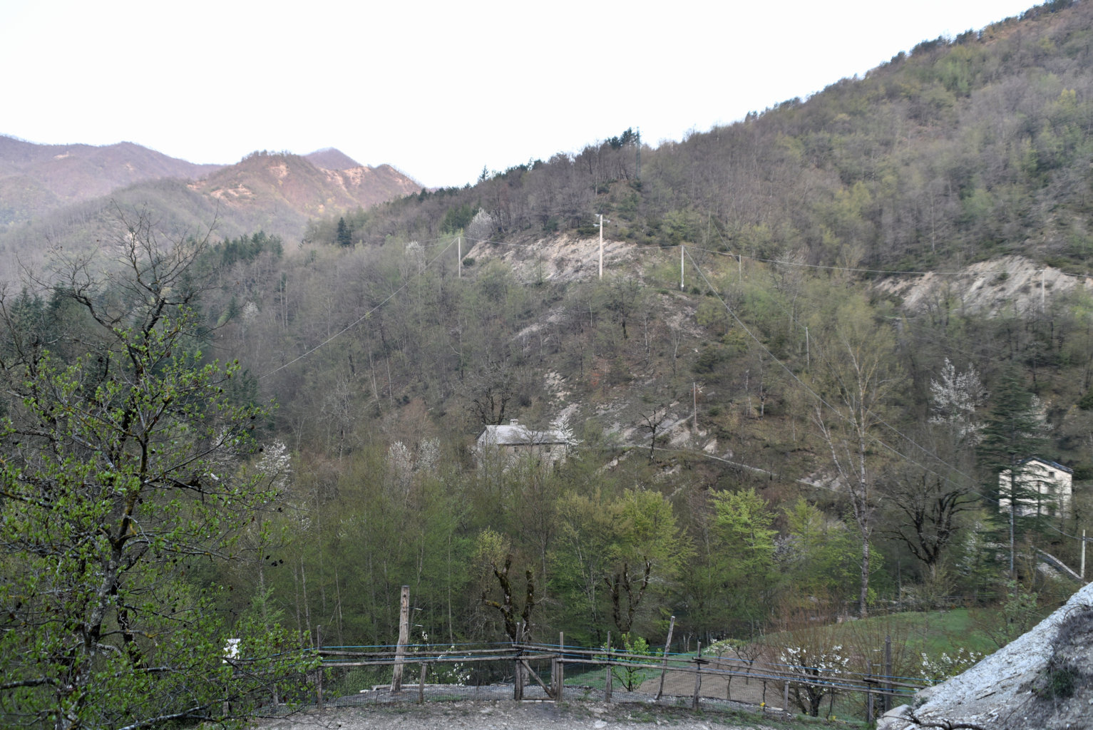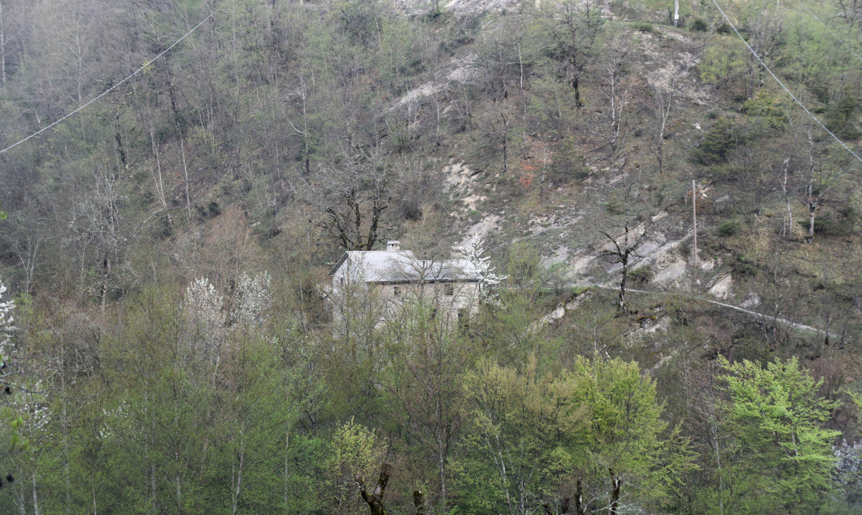 00f28/00f31 - Dal versante opposto, scorci dell’area tra Cà del Topino e Casina del Ponte, e particolari di Cà del Topino (19/04/18).