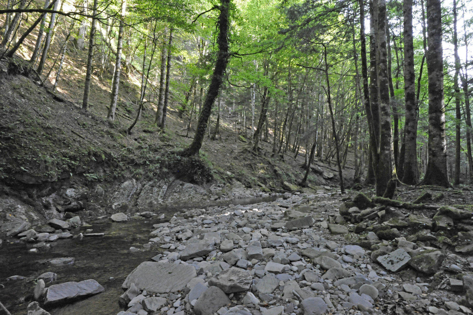 00d1/00d5 – Vedute del sito del ponticello pedonale sul Fosso della Lama, poco dopo lo sbocco del Fosso dei Pianelli (ultime foto), dove rimangono scarsissimi resti di sistemazioni (1/08/23).