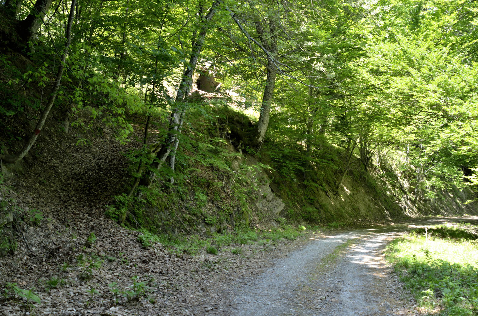 00f13/00f19 – La pista da un lato prosegue verso Scaramuccia e il fondovalle del Fosso di Ponte Camera, dall’altro verso l’innesto con la S.F. del Cancellino, dove era presente una sorta di passerella, oggi rimossa: la maestà si trovava sul liogo della pista odierna di accesso (14/07/20 – 20/07/20 – 11/05/11).