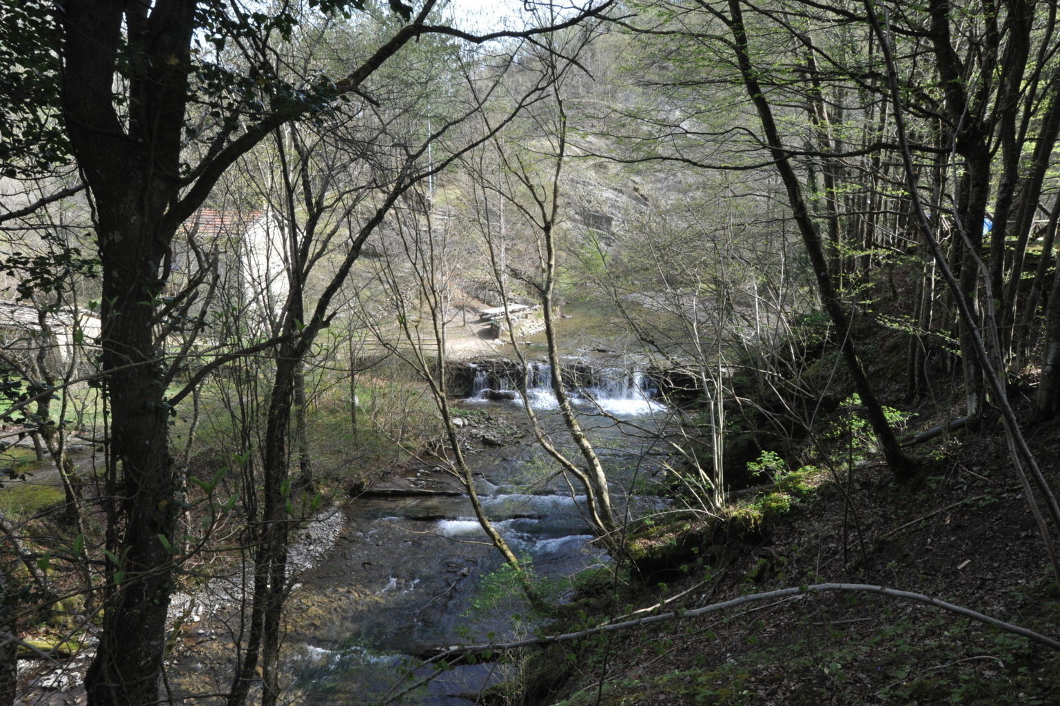 00a1 – 00a2 – Dalla dorsale a monte del Fosso di Ristèfani si ha una veduta complessiva della valle di Campigna e dell’incisione fluviale fin dallo spartiacque e, in particolare sull’area tra il mulino e Case Fiumari (25/04/18).