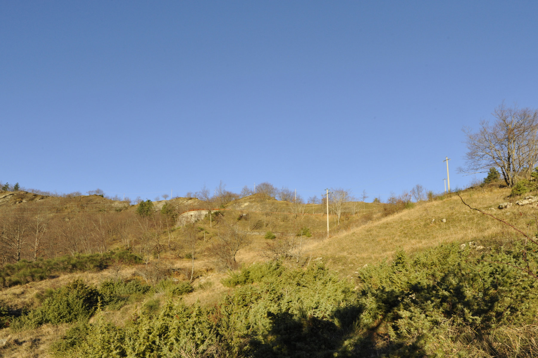 00c1/00c10 – Dal crinale che la separa dalla valle del Fosso di Montaccesi, veduta della testata del Fosso del Forcone e suo affluente della Fonte sulla sella tra Costa Poggio dei Ronchi e Colla Tre Faggi e del suo sviluppo, dove si nota il crinaletto di Castagnoli di Sopra di separazione dal Fosso del Forcone e dal suo affluente della Fonte (6/04/16 - 21/12/17 - 11/12/18).
