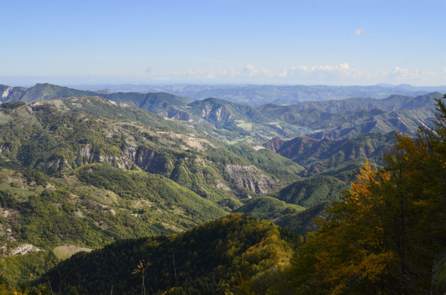 00a1 - 00a2 - 00a3 - Dalla S.F. di Giogo di Castagno, scorci panoramici e ravvicinati dello sviluppo della valle del Bidente delle Celle e delle Ripe Toscane dove tra l’altro si nota l’ultima pendice del crinale di Partinico che converge sul fondovalle dove sbocca il Fosso di Coloreta e molto probabilmente si trovava il Molino del Fornello (7/10/17).