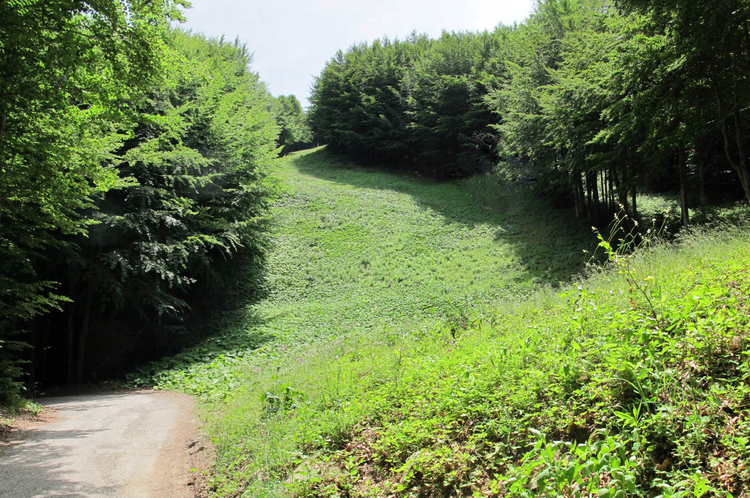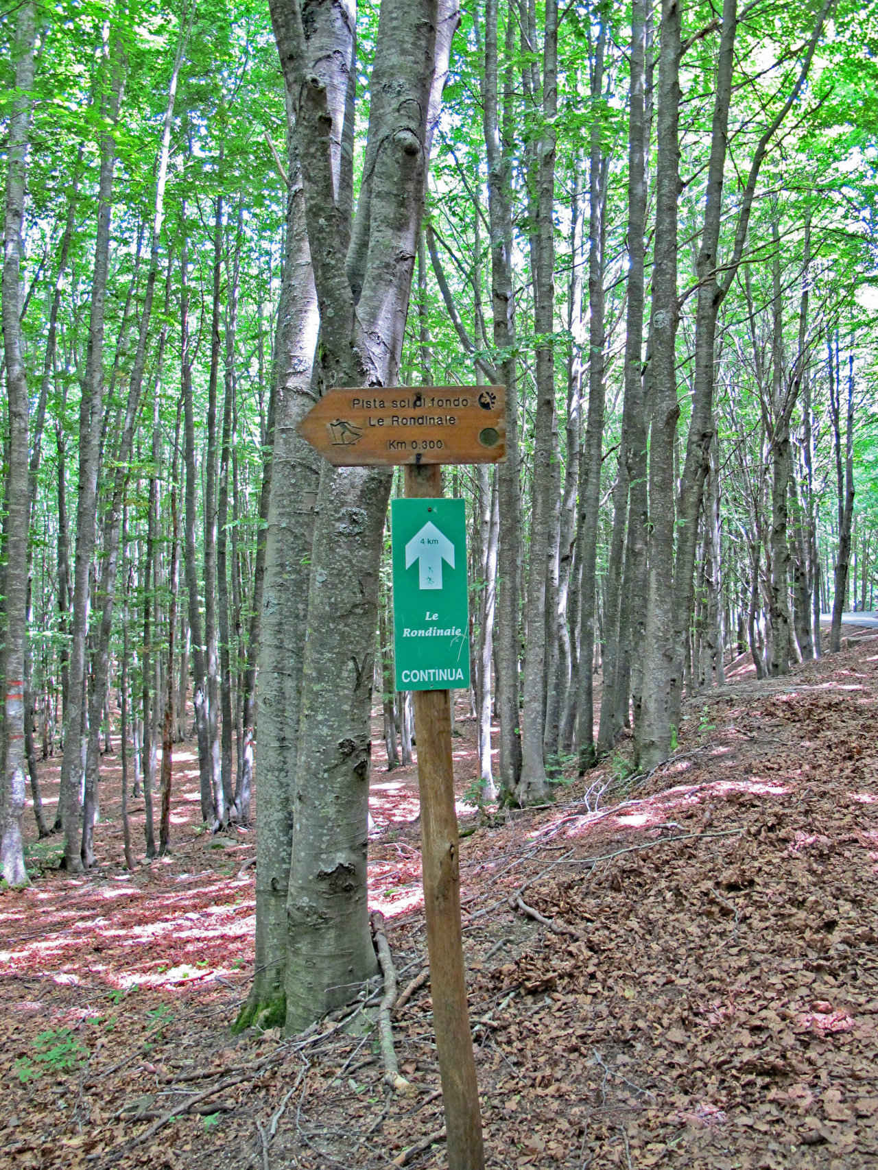 012 – Dalla S.F. di Giogo di Castagno tagliata sotto Pian delle Fontanelle, scorci tra la vegetazione consentono viste ravvicinate del profilo di Poggio Martino e della sella di Fangacci (27/09/11 – 16/04/16).