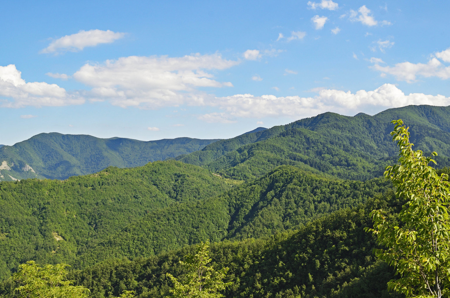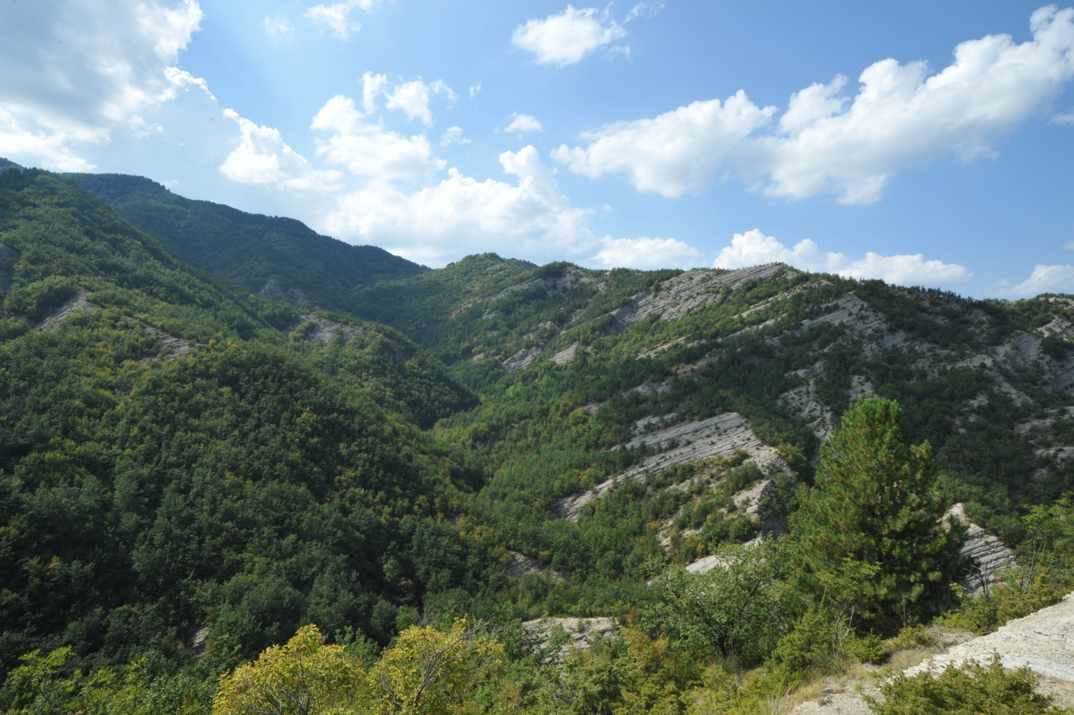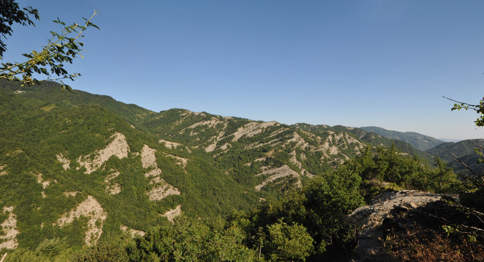 00d1/00d6 – Dall’area di sosta pressi Maestà di Valdora, panoramica e vedute del crinale del Monte Roncacci che si stacca dal Monte Valprandola, presso il quale si nota la sella tra il Paretaio e Siepe dell’Orso, evidente area di passo tra le valli di Pietrapazza e Ridràcoli (27/06/12 – 19/07/16).